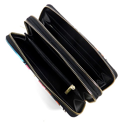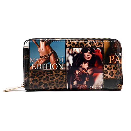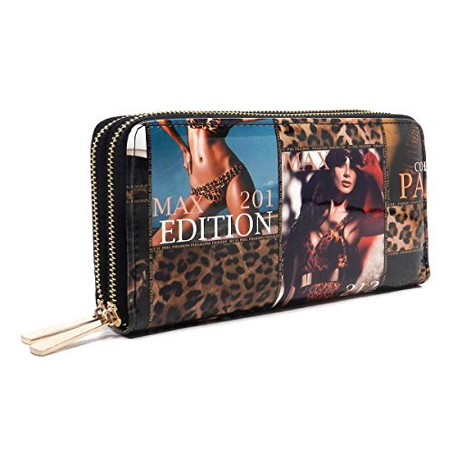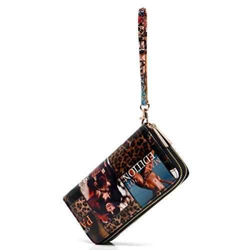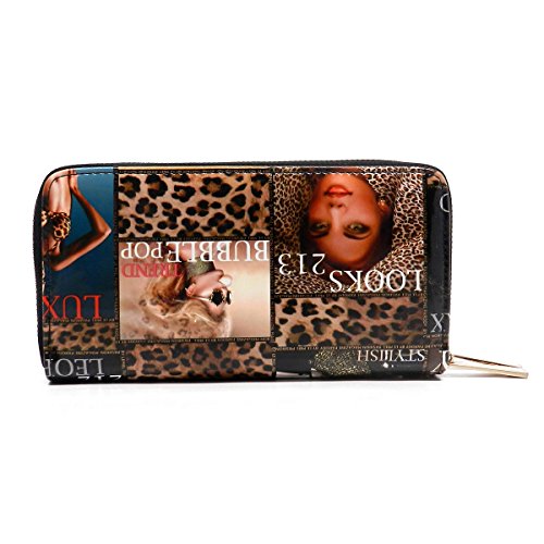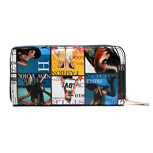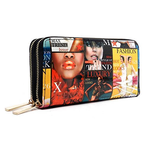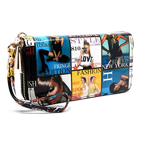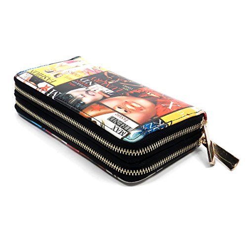 -. Brand : Elphis -. Color : multicoloured -. Department : womens -. Feature : Double Zip Around Wallet / 2 compartments, Credit card or business card slots. / L 7.5" * H 4" * W 1.75" / Please note that the image location may vary on the actual product. -. Model : W0002Y -. PackageQuantity : 1 -. ProductGroup : Shoes -. ProductTypeName : HANDBAG -. Size : Large -. Title : Magazine Cover Collage Double Zip Around Clutch Wallet Wristlet