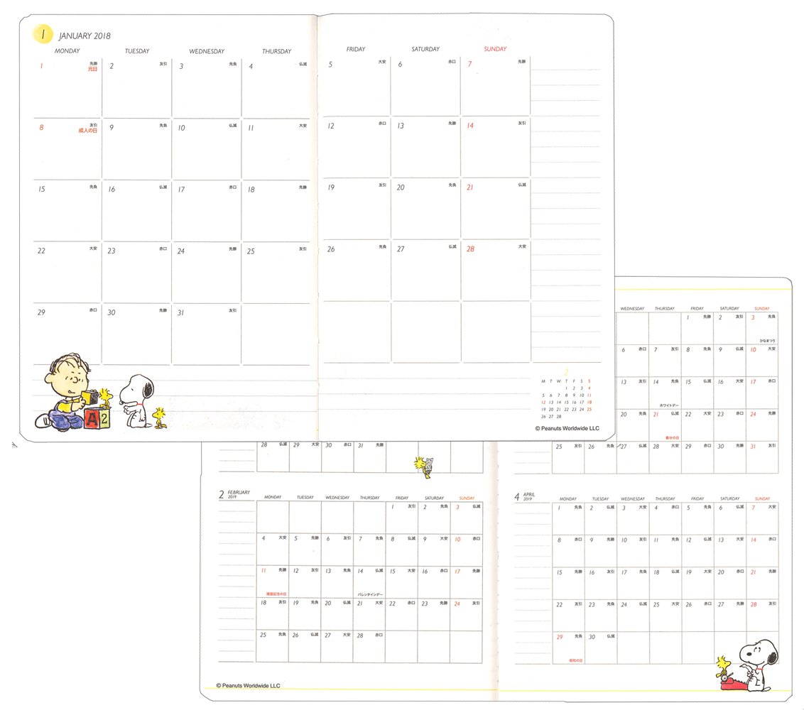 The monthly calendar page of the slim and easy-to-use monthly notebook that you can carry with ease, enriched the memo page in addition to the monthly calendar page.