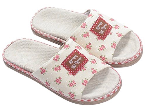 (Blubi)/Women's/Slippers/DIRECT FROM USA/Blubi Women's Summer Floral Flax House Slippers Skid-proof Ladies Slippers Bedroom Slippers