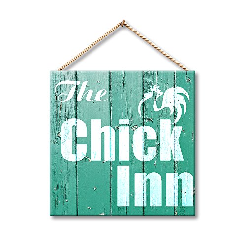 Hermosaa The Chick Inn Chicken Coop Decor Rustic 10 x 10 Inches Wood Plank Design Hanging Sign