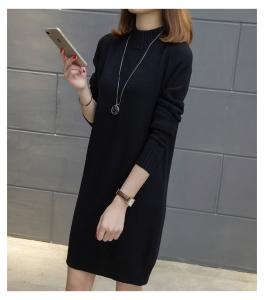 ニットワンピース ミニワンピース シンプル 無地 セーター ニット ラウンドネック 丸首 長袖 秋冬 プチプラセール