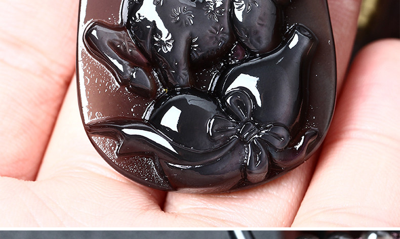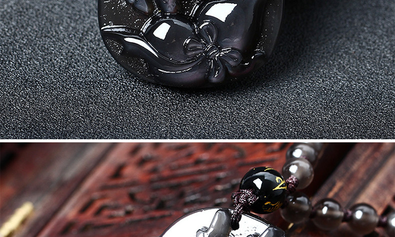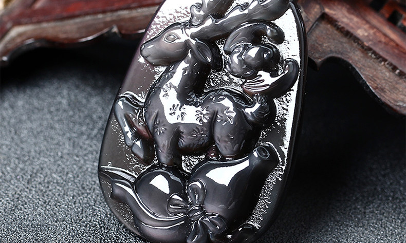 增开庆光堂祥鹿采芝属虎开光吉祥物吊坠彩虹眼黑曜石项坠
