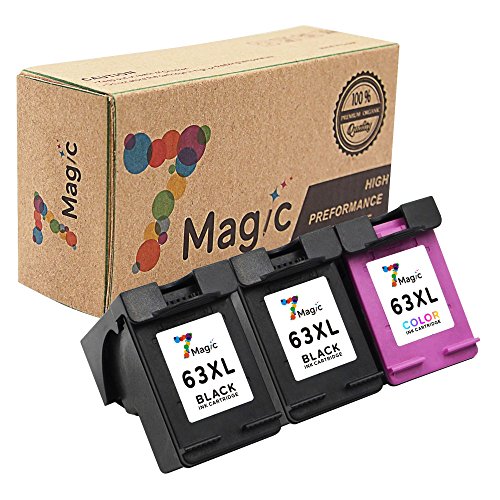 7Magic Remanufactured Ink Cartridges Replacement for HP 63 XL Use in HP Envy 4520 4512, Officejet 4655 3830 4650, Deskjet 2130 3632 3636 All-In-One Printers (1PK Black & 2PK Tricolor, 3-Pack)