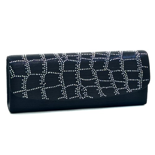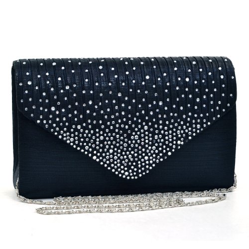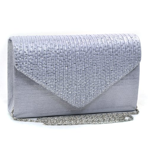 Features: Rhinestones in variety of sizes on flap, Silver tone hardware, This tall evening envelope style clutch is frosted with glistening rhinestones that will make you glow during your special occasion. Inside can easily fit a cell phone, wallet, compact mirror, lip gloss, and a pack of gum.