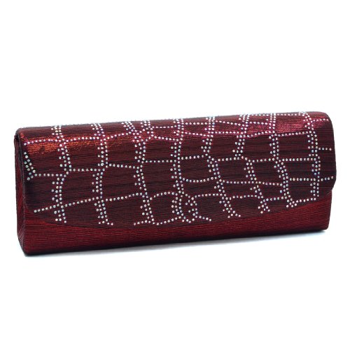 Dasein Rhinestone Frosted Evening Clutch - Burgundy Red