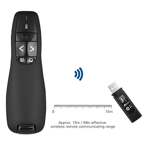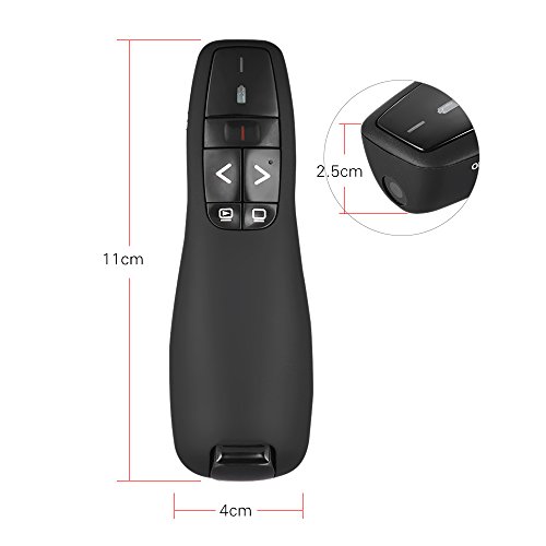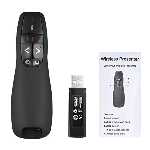Studio : KKmoon Publisher : KKmoon Binding : Electronics Product Description Features: 2.4GHz wireless presenter pen, with a bright red light for easily seeing most backgrounds and projective surface. With button to page up down, full screen, black screen, convenient for control your slideshow. Built-in hidden USB receiver design, plug and play. Approx. 15m / 59in effective wireless remote communicating range, free for you to walk around interact with your audience. Support kinds of Excel, PowerPoint, webpage, Ebooks browsing etc. Eco-friendly material, ergonomically fluent design compact size offers you comfortable using feeling. Great assistant for teacher, lecturer, professor, scholar other presenters, as well as a ideal considerate gift.