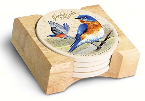 5 Piece Bluebird Postcard Stone Coaster Set