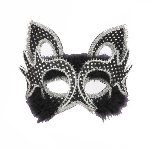 -. Binding : Apparel -. Brand : Forum Novelties -. Department : mens -. Feature : Mask includes patented flip up headband, allowing the mask to swivel up on top of the head or down onto the face / Pair with your own clothing for a festive look or combine with other holiday pieces by Forum Novelties for a complete costume / Half mask; one size fits most adults / Ideal for Mardi Gras celebrations, costume parties, and more / Made by Forum Novelties, a leader in costumes and novelty products for more than 30 years -. Genre : Holiday - Mardi Gras -. IsAdultProduct : 0 -. Label : Forum Novelties Costumes -. Manufacturer : Forum Novelties Costumes -. ProductGroup : Apparel -. ProductTypeName : ADULT_COSTUME -. Publisher : Forum Novelties Costumes -. Studio : Forum Novelties Costumes -. Title : Forum Mardi Gras Costume Masquerade Cat Mask with Sequins and Marabou Faux Fur