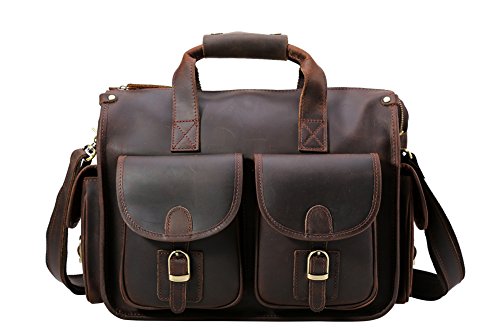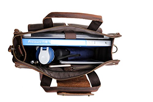 This is Genda 2Archer Leather Briefcase Messenger Business Tote Bag Fit 13-inch Laptop. Please make sure the size of this item is suitable for you before placing the order. Also please note that the color of the actual item may be slightly different from the photos due to lighting and other factors. Product Specification: Color: dark brown Size:15.7 inch(length)*5.9 inch(depth)*12.6 inch(height) Material: 100% genuine leather ( crazy horse leather ) Gender: men or teen boys Zipper closure for easy access, removable and adjustable padded shoulder strap, length: 82-140cm/32.3-55.1 inch, width: 3.6cm/1.4 inch Can hold your 13-inch laptop, A4 books, wallet, phone,pens or your clothes, etc Style: Briefcases,business bag,office bag,shoulder bag,laptop bag Package Content: 1PC * Briefcase 0
