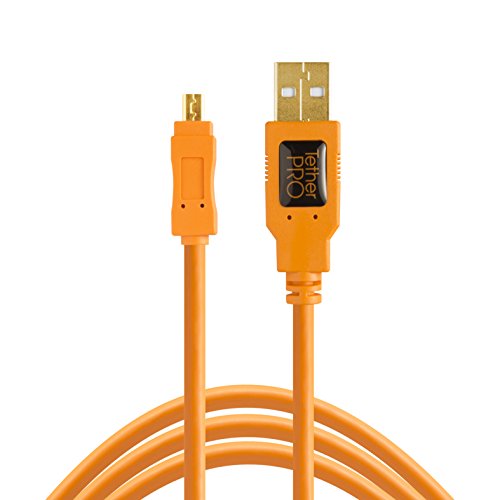 -. Title : Tether Tools 15 ft. TetherPro USB A Male to Mini-B 8-pin Cable (Orange)