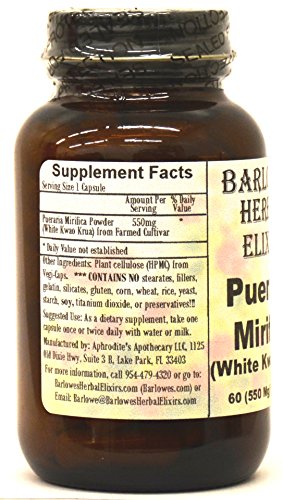 -. Feature : Pueraria Mirifica may benefit breasts, hair, skin! From Farmed Cultivar! / Highest Quality & Potency, Bottled in Glass! / No Stearates, Artificial Colors, or Preservatives! / No Fillers, Adulterants, Gluten, Starch, Wheat, Corn, Rice, etc! / All Barlowe's Products Ship Together At One Low Rate!