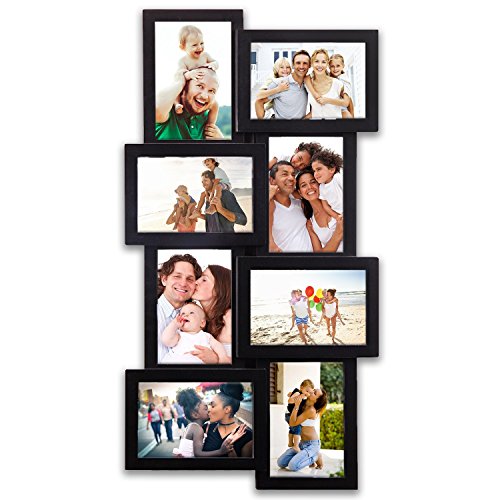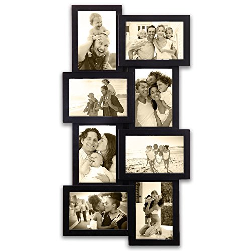 8 Opening Gallery Collage Wall Hanging Frame Set 12 by 23" inch For 4 x 6" inch Photo, 8 Sockets, Black Edge | By Hello Laura