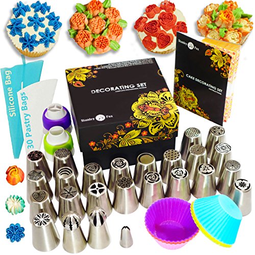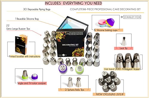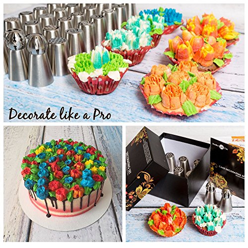 - ★ BEST BAKING SUPPLIES SET: This cake decorating kit is specially designed for baking enthusiasts. With our Complete 66 pcs Decorating Set of Russian Piping Tips you can make any wildest dream cake, muffins, cupcakes decoration in no time.