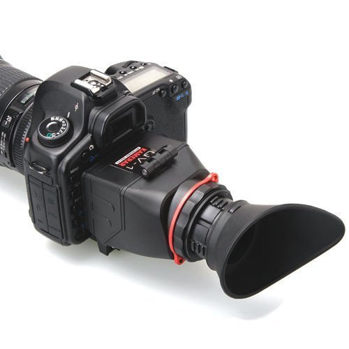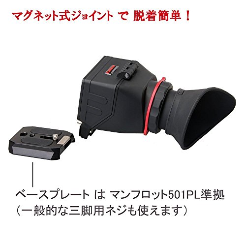 Small in price, but big in features. The QV-1 is one of our most affordable LCD ViewFinders for DSLR Video Cameras! The new QV-1 uses an innovative magnetic quick release that inserts to a manfrotto 501PL compatible baseplate. A design that is both fast and functional. Designed to Fit Forward / Back / Left / Right adjustments can be performed to fit a variety of popular DSLR Cameras that use a 3"-3.2" LCD screen. Clear and Sharp Images. Focus with Ease. The QV-1 LCD View Finder will magnify your lcd screen image by 2.5x so that you can easily focus on your subject, and will also offer a true view of your image when working outdoors in bright daylight. An adjustable diopter ring moves the primary lens forward or back if your image does not appear focused. This is especially helpful for those who have less than perfect vision. Enjoy Shooting Outdoors Prevent annoying glare on your screen so that you can see true color saturation, contrast, and proper exposure. The QV-1 remains locked in the downward setting, but flips up quickly to be used as a simple sun hood or to access your touch screen LCD. Innovative Baseplate Design The innovative magnetic quick release design allows the QV-1 to be inserted and removed from a solid metal quick release baseplate attached to the bottom of your camera. The QV-1 baseplate shares a similar shape to the Manfrotto 501PL quick release plate. Once the QV-1 baseplate is attached to your camera, you can mount directly to supported Manfrotto video fluid heads. If you are using a different system, you can still attach your proprietary tripod plate under the QV-1 baseplate by accessing the available 1/4" threads. QV-1 LCD View Finder includes: (1) QV-1 LCD View Finder (1) Magnetic Quick Release Base Plate (1) Lanyard Neckstrap (1) MicroFiber Cleaning Cloth (1) Hex Key Allen Wrench 14-day Money Back Guarantee! 1 Year Manufacture Warranty! ***NOTE : This item will not fit cameras with battery gripsFeature