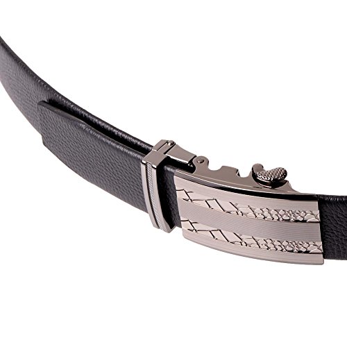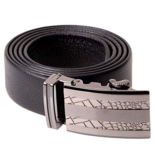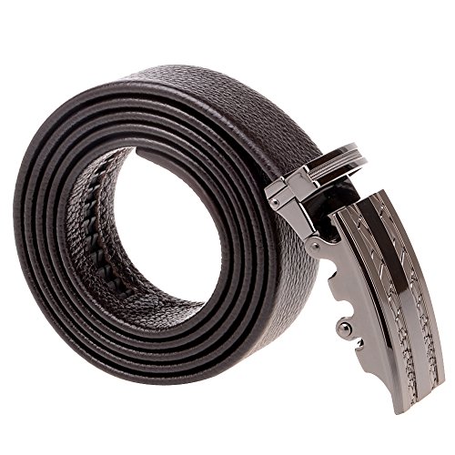 - Feature : A piece of cow leather. / Auto Lock Buckle (Sliding Buckle), No holes in belt. / Engraved alloy buckle. Fine stitching line / 1 3/8 inch (35mm) wide / Strap length is about 46" inch 115cm. You can trim the strap length to fit your size.