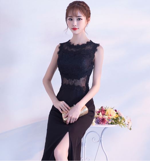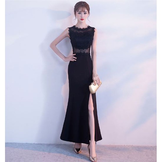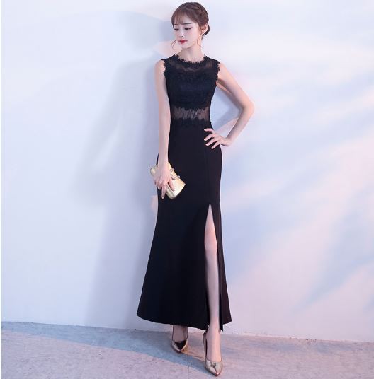 深めのスリットが入ったロングドレスです。