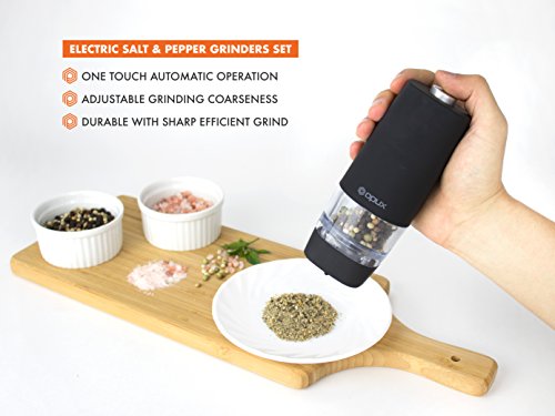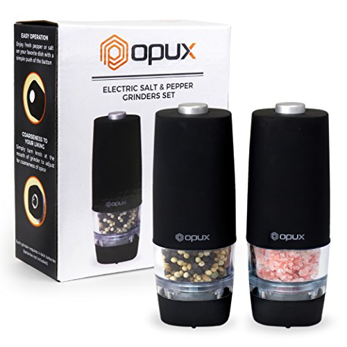 Premium Electric Salt and Pepper Grinder Set by OPUX | Automatic One Touch Operation, Battery Powered Salt & Pepper Mill, Adjustable Coarseness, Strong Acrylic Stainless Steel, Body, Non-Corrosive