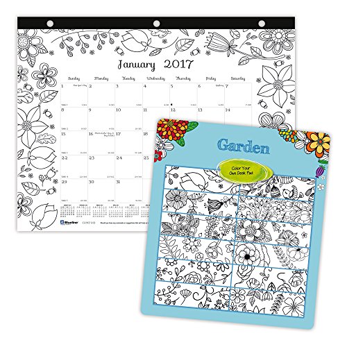 -. Title : Blueline 2017 Monthly Coloring Mini Desk Pad Calendar, Garden, January - December, 11 x 8.5 inches (C2917213-17)