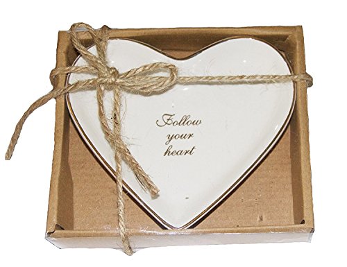 White Ceramic Jewelry Dish Ring Holder - Follow Your Heart