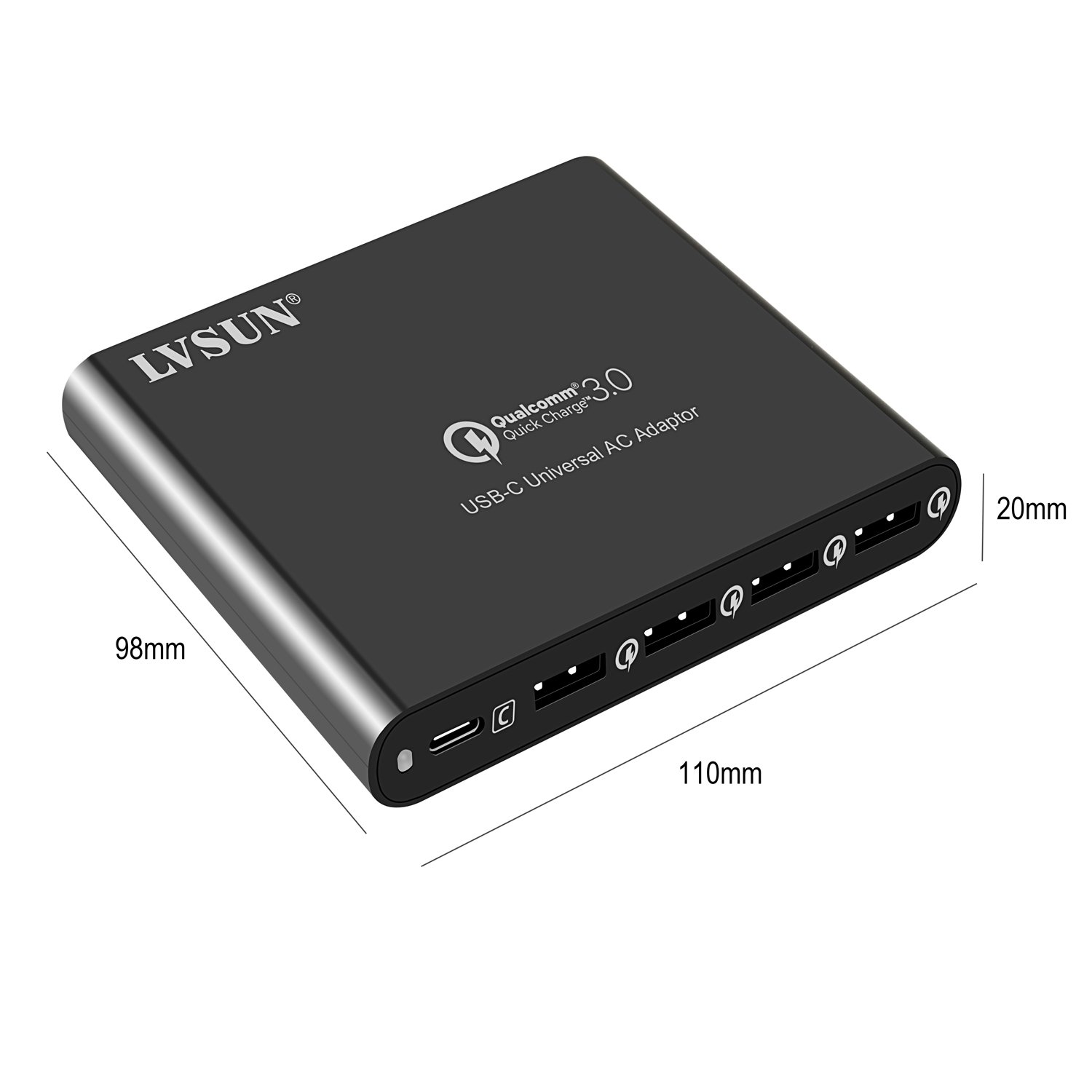 LVSUN 5 port USB-C fast charger 80 W Quick Charge 3.0 Compatible with charging technology