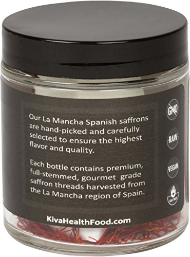 Kiva Gourmet, Premium Spanish Saffron from La Mancha: Our La Mancha Spanish Saffrons are hand-picked and carefully selected to ensure the utmost flavor and quality. Each bottle contains only the highest rated (Category 1 / 200+ Grade) full stemmed threads with no additives or preservatives.