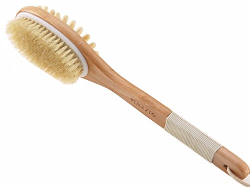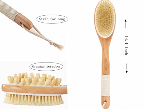 Back Scrub Body Brush Pinkzio Natural Boar Bristle Body Brush Scrubber For Dry Brushing 14 Inch Long Handle Back Exfoliating Scrubber Shower Brush With Massage Head.