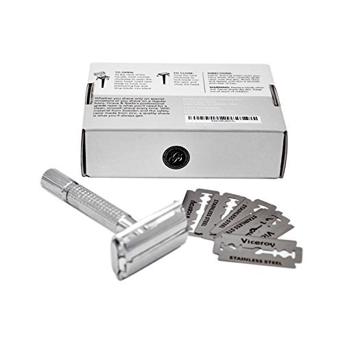 Double Edge Safety Razor Kit + 5 Swedish Platinum Super Blades | Strong Handle for Comfortable Wet Shaving | Enjoy the Closest Shave with Zero...