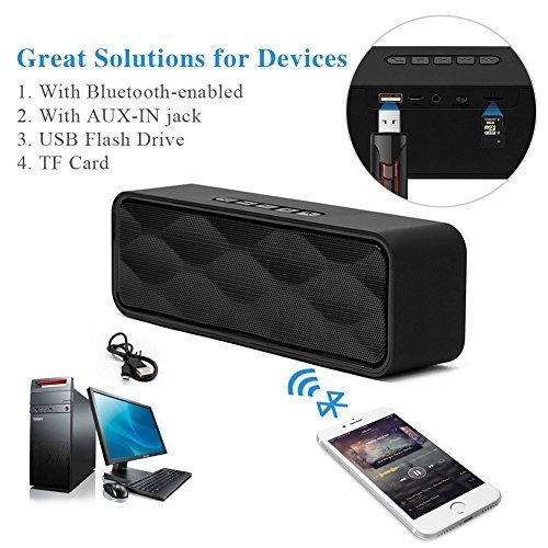 Built-in 3.5mm aux port allows speaker to connect to media devices WITH OR WITHOUT bluetooth capability; Fashionable and stylish design with solid performance and universal compatibility for Android, iPhone, iPad, tablets, smartphones, iPods, MP3, MP4, radio players and other bluetooth enabled digital players or media devices with aux port;