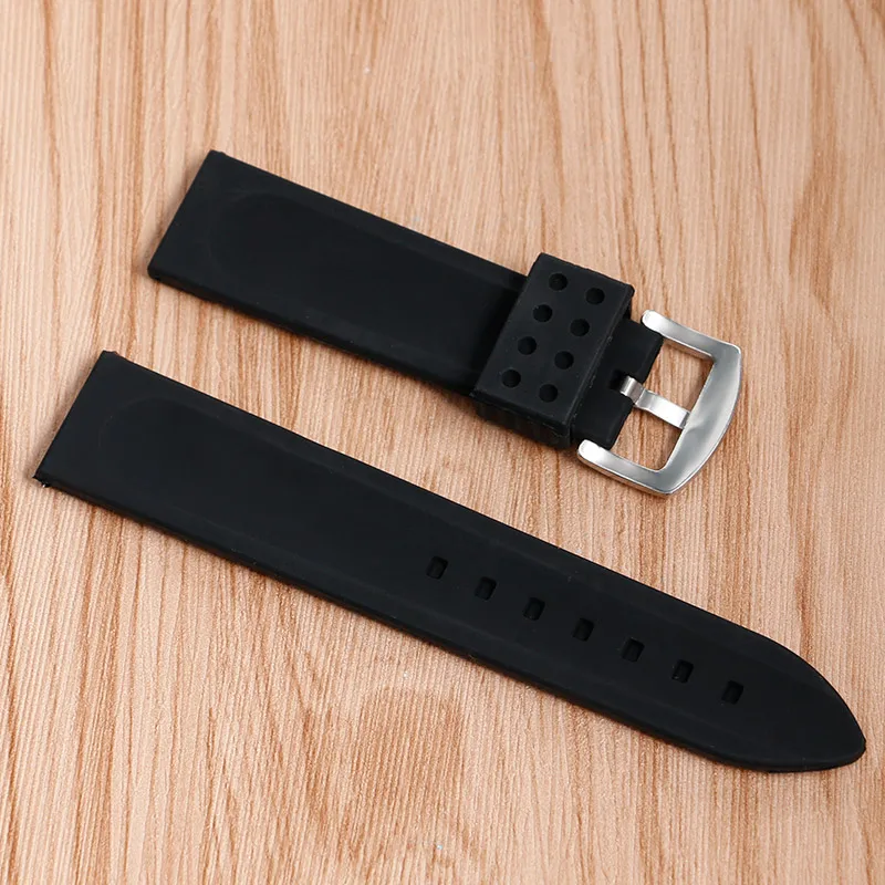| [해외]새로운 교체 방수 블랙 시계 스트랩 다이빙 밴드 당신 Ourdoor 실리콘 팔찌 스테인레스 스틸 버클 20/22/24/26/28 미리메터 |