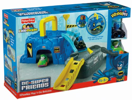 -. Binding : Toy -. Brand : Fisher-P.R.Ice -. EAN : 5889332787521 -. Feature : Combines great vehicle action of Wheelies with kid's favorite Superfriends characters, Batman and Joker / Set consists of 2 sculpted "mountain" base pieces plus 3 ramp pieces in different shapes / Help Batman try to stop The Joker by zooming through the tunnels and down the ramps! / Includes 2 Wheelies, 2 Batcave pieces, 3 ramp pieces, and removable gate/sign / Everything stores neatly inside for easy take-along fun! -. IsAdultProduct : 0 -. Label : Fisher P.R.Ice -. Manufacturer : Fisher P.R.Ice -. Model : W6170 -. MPN : W6170 -. NumberOfItems : 1 -. PackageQuantity : 1 -. PartNumber : W6170 -. ProductGroup : Toy -. ProductTypeName : TOYS_AND_GAMES -. Publisher : Fisher P.R.Ice -. Studio : Fisher P.R.Ice -. Title : Fisher-P.R.Ice Little People DC Super Friends Play 'n Go Batcave -. UPC : 746775064006 -. Warranty : No Warranty