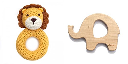 This gift set is the perfect gift for a new baby or expecting mama. Give the gift of worry free toys with this organic and natural rattle and teether set.The easy to grasp rattle is lovingly hand-crocheted using soft 100% organically grown and sustainably harvested bamboo. Bamboo yarn is soft, naturally antibacterial and non-allergenic. Lion Rattle is approximately 6" tall and will make a cute and eco-friendly gift. Bamboo is also a renewable, sustainable resource.
