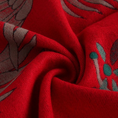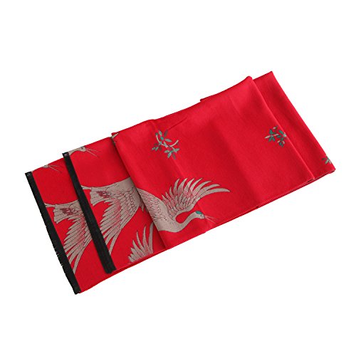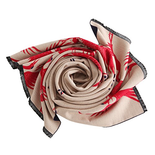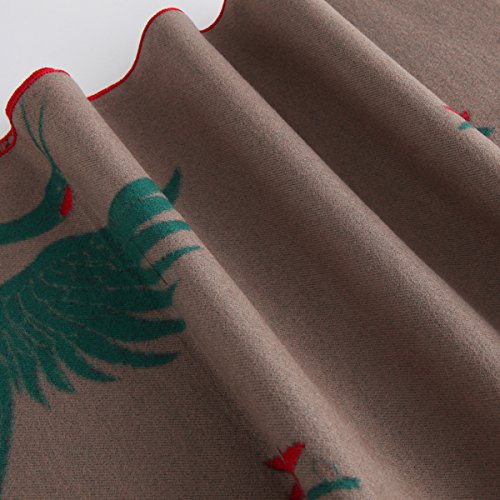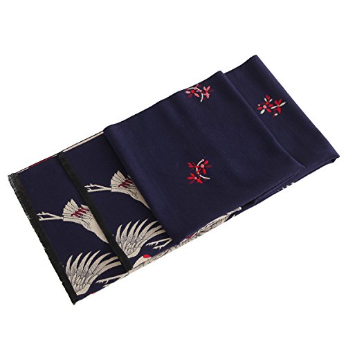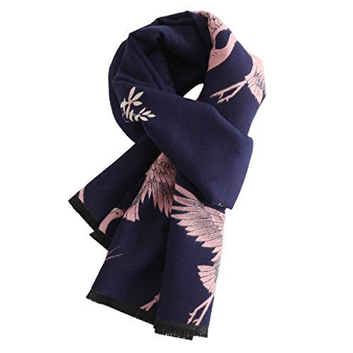 Women's Big Long Shawl Crane Pattern Japanese Winter Warm Scarf for Cold Weather