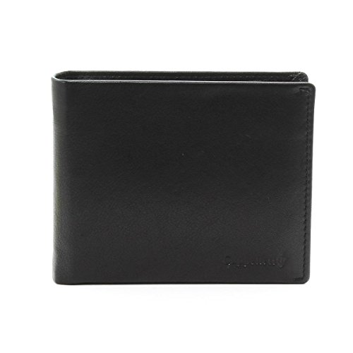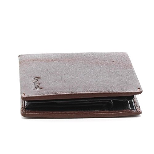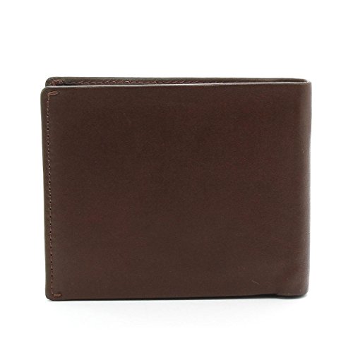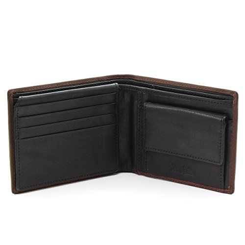 Acht Kreditkartenfächer, dunkelbraun Lederverzierung im Gegensatz zu den schwarzen Innen, zwei Taschen und ein Innenfach für Dokumente.