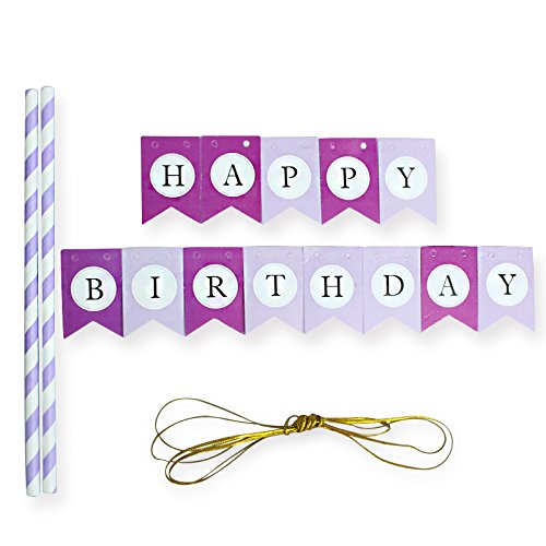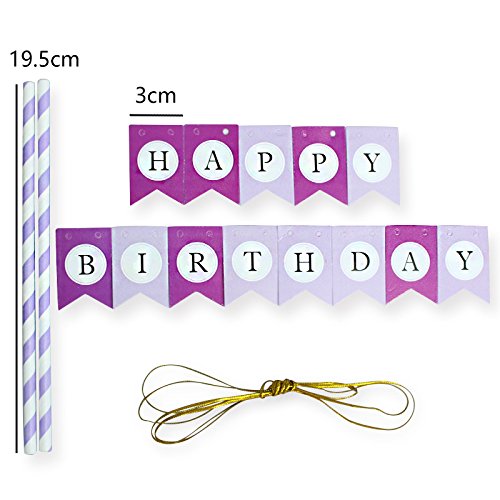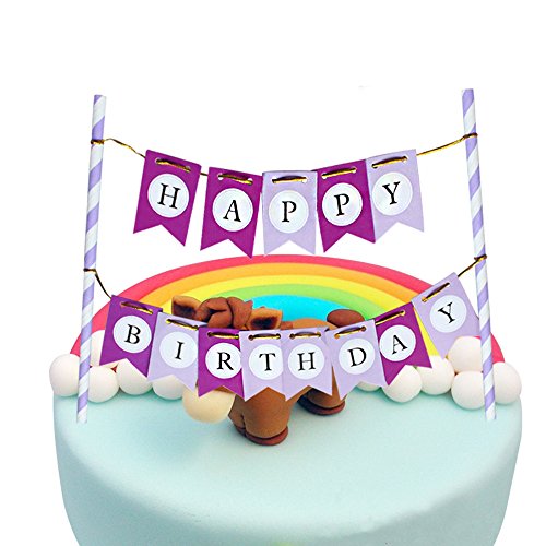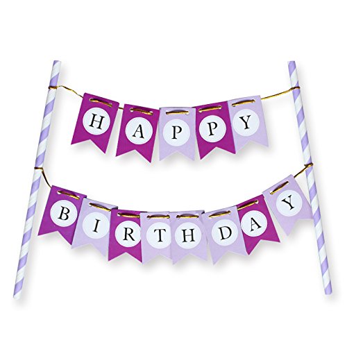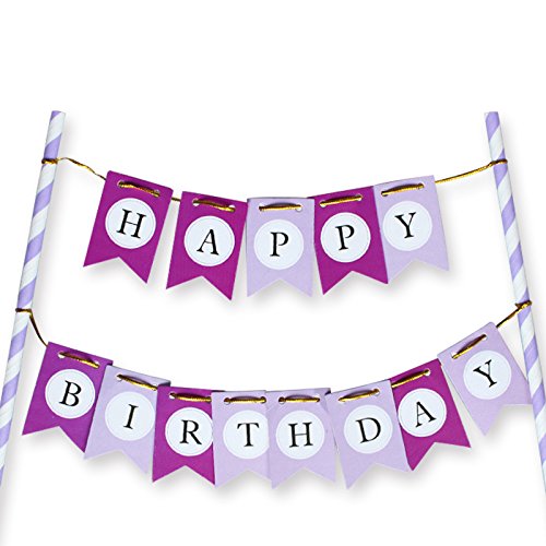 LOVELY BITON(TM) Purple Happy Birthday Cake Topper Banner for Parties Baby Birthdays