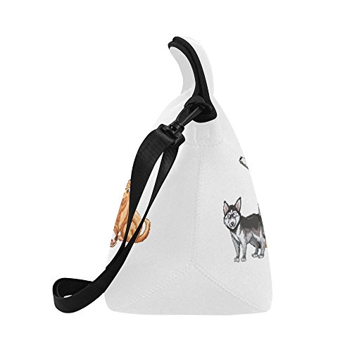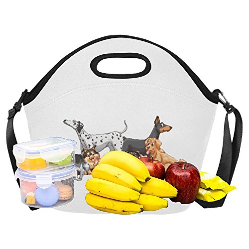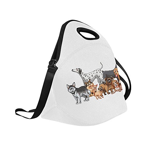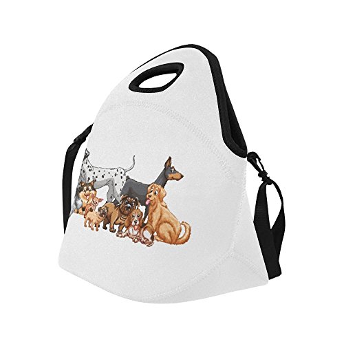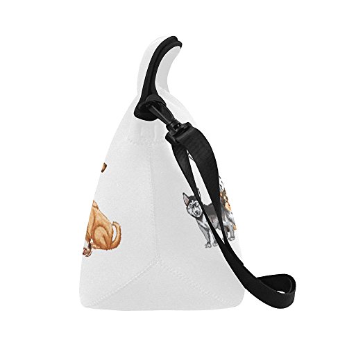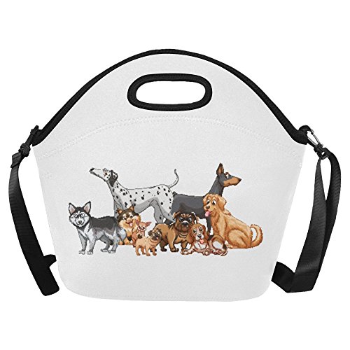 InterestPrint Neoprene Lunch Bag Unique Design Kind Of Dogs Best Lunch Boxes with Zipper and Shoulder Strap Keeps Lunch Fresh for Women, Adults, Kids, Girls, and Teen Girls