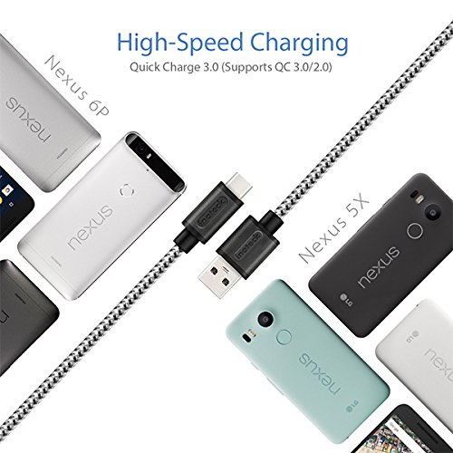 Inateck USB C Cable, 100CM/3.3Ft Type-C Cable with USB-C(USB 3.1) to USB-A(USB 2.0), for Nexus 6P, Nexus 5X, LG G5, OnePlus 2, Huawei P9 etc. - Black and Gray Nylon Braided