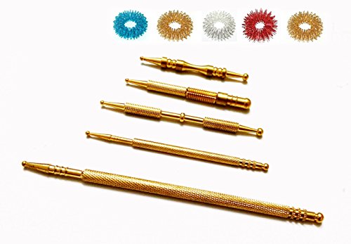 -. Title : ACS / ACM Sujok Probe Acupressure Metal Brass Diagnostic Roller Jimmys Set 5 Types + 5pcs Rings Mega & Long Jimmy L - 15Cm, Dia - 0.6Cm, Slim Long L - 10Cm, Long Cut L - 9.6Cm Brass