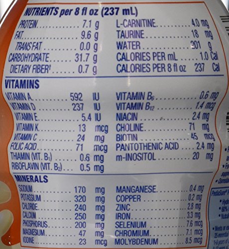 -. Feature : Qty : 24 Per Case / Fiber per Serving : 1.1, Protein per Serving : 10.7 g / This Listing Is For PediaSure Peptide Nutritional Formula, Vanilla / Calorie Density per Serving : 1.0, Calories per Serving : 356, Carbs Per Serving (Grams) : 47.6 g / Size Ounce : 8 Oz, Size in ML : 237 ml