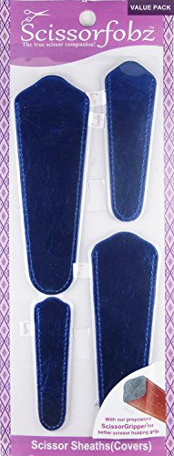 Scissors by SCISSORFOBZ with ScissorGripper -VALUE PACK-4 sizes- Designer Scissor sheaths Covers Holders for embroidery sewing quilting - Quilters sewers gift -Metallic Royal Blue. #69