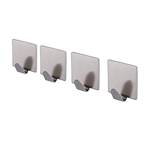 KES Self Adhesive Hooks SUS 304 Stainless Steel with 3M Sticky Strip Stick on Wall Hanger for Bathroom Kitchen Brushed Finish Bath Towel Coat Robe Hook 4 Pieces, A7062-2-P4