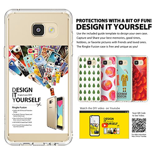 [Description] Fits perfectly on the Samsung Galaxy A9 2016 Crystal clear protection enhances the Galaxy A3 2nd Gen. 2016 original look with minimal bulk. Slim transparent TPU bumper with Active Touch Technology allows easy and natural access to all ports and buttons. Attached Dust Caps protect charging ports and audio jacks from dust and dirt. No more tiny dust particles to attack your phone! The possibilities are endless! Includes Free DIY template to customize and express your creativity for your perfect Galaxy A 9 2016 case. Keep the clean and pure look or create endless gorgeous designs with the free easy step DIY template included!