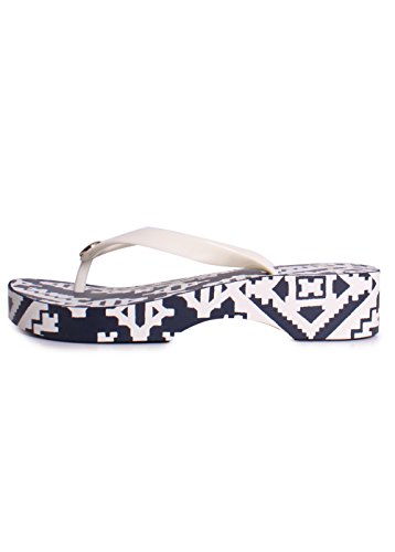 Tory Burch Cut-Out Wedge Flip Flop In Perfect Ivory/Tapestry Geo
