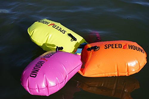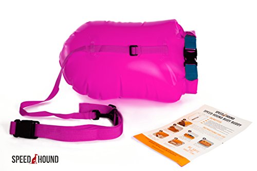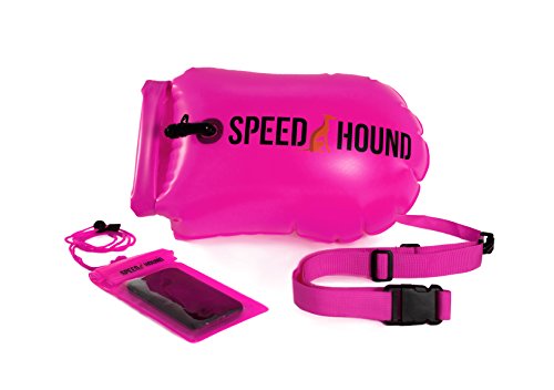Speed Hound Buoy Buddy - Open Water Swim Buoy Flotation Device With Dry Bag and Waterproof Cell Phone Case (High Vis Pink) for Swimmers, Triathletes, and Snorkelers. Floats for Safer Swims