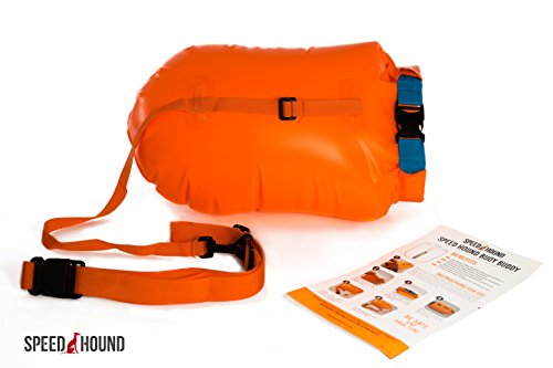 Speed Hound Buoy Buddy - Open Water Swim Buoy Flotation Device With Dry Bag and Waterproof Cell Phone Case (Orange) for Swimmers, Triathletes, and Snorkelers. Floats for Safer Swims