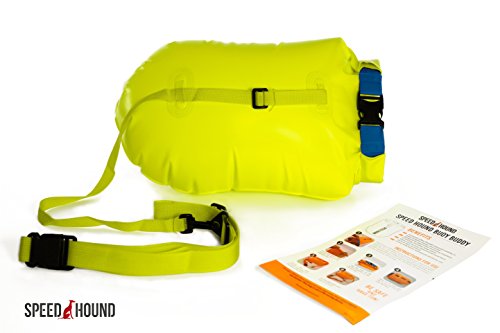 Speed Hound Buoy Buddy - Open Water Swim Buoy Flotation Device With Dry Bag and Waterproof Cell Phone Case (Highlighter Yellow) for Swimmers, Triathletes, and Snorkelers. Floats for Safer Swims
