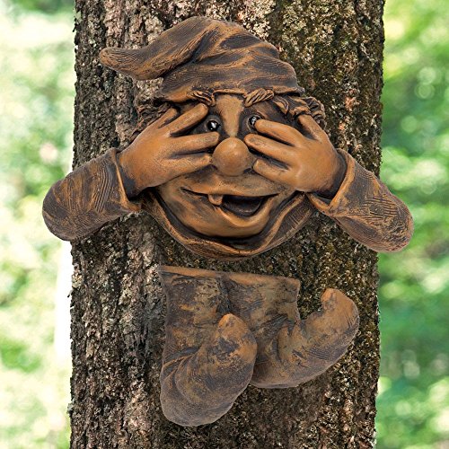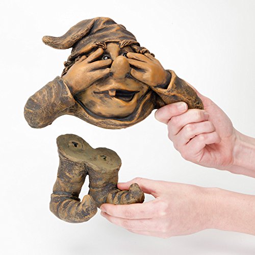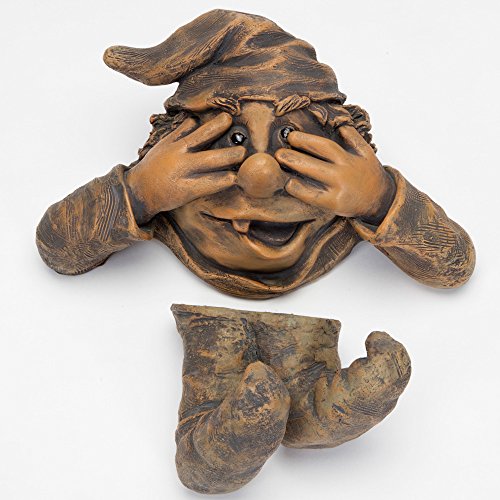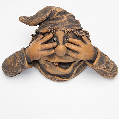 Bits and Pieces - Garden Peeker Elf Peek-A-Boo Tree Hugger - Polyresin Outdoor Tree Sculpture - Whimsical Garden Decoration