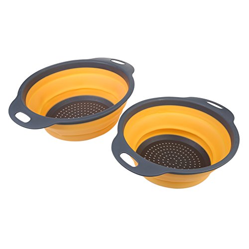 2pcs Kitchen Collapsible Silicone Colander/Strainer,Yihome 2 Sizes 9.7 and 11.5 inch(Orange)
