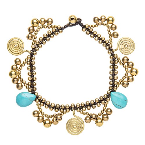 This is a beautiful handmade anklet made with brass tear drop simulated turquoise bead and spiral charms. The length is 27 cm and will fit ankle size up to 24 cm.