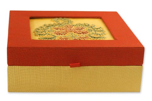 NOVICA Floral Cotton and Wood Jewelry Box, Red, 'Pachmarhi Forest'