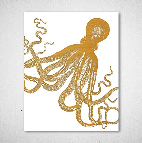 -. Brand : Vintage Book Art Co. -. Color : Glossy Gold Foil and black ink -. IsAdultProduct : 0 -. ProductGroup : Guild Product -. ProductTypeName : GUILD_HOME -. Size : 8 x 10 Inch -. Title : Gold Foil Art P.R.Int - Golden Octopus P.R.Int Design 8x10 inches